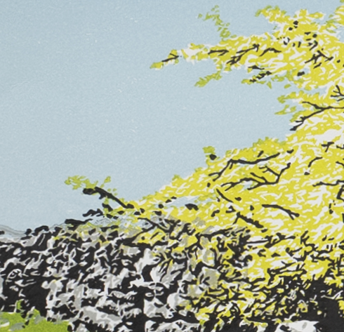 There are subtle variations between each print - as is the way with lino relief printing. In some, the sky is a little light and contains more speckles, in others, the shadow is less dense, allowing some elements of the green grass to show through. So if the print pictured here is no longer available, I'll be happy to send photos that will show the variances so you can choose the version you like the best.